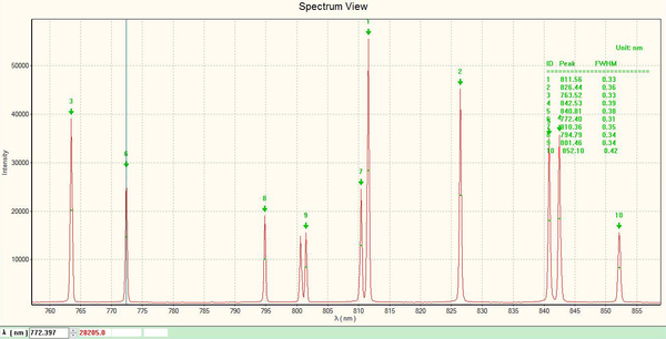 标准汞灯光谱图(*不同光谱仪因为探测器和光学系统的差异,测量的汞灯光谱数据会有差异)