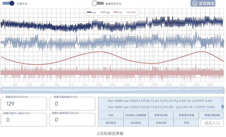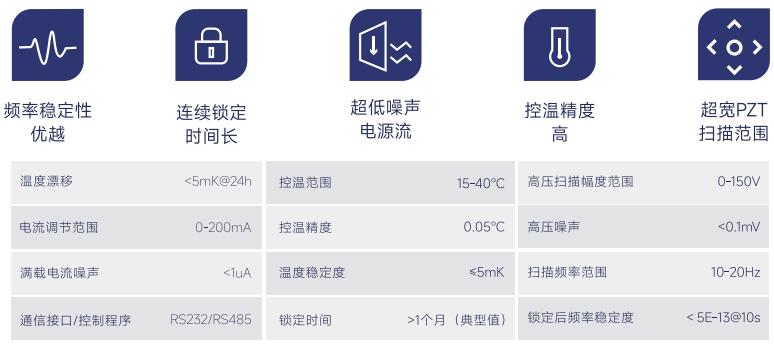 自动稳频驱动器包含调制信号模块、频率误差解调模块,宽带反馈模块、自动找谱算法、自动锁定程序,具有一键锁定功能(自动稳频),行业领先的失锁后5秒内自动重新锁定功能,支持稳频窄线宽激光器长时间稳定工作。