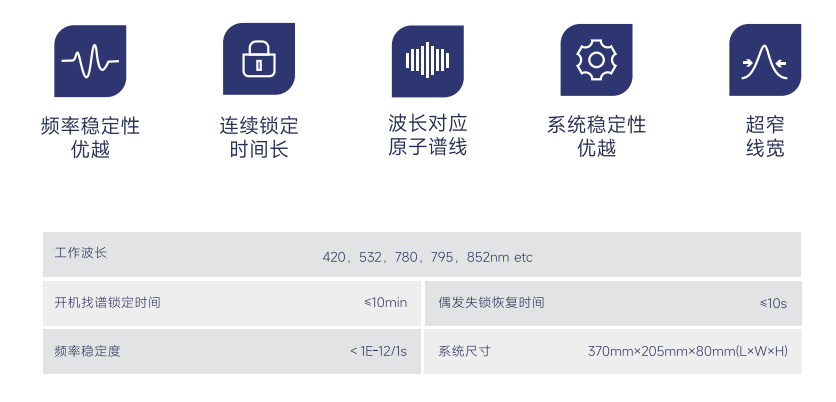 本产品结合高带宽反馈机制,可有效压制激光频率噪声,从而实现秒级稳定度10-13量级的激光输出,具有开机自动找谱锁定,偶发失锁快速恢复功能,可实现长时间连续工作。 频率稳定性优越 连续锁定时间长 波长对应原子谱线 系统稳定性优越 超窄线宽 Read More